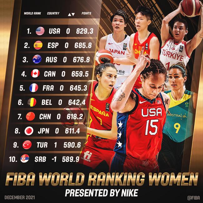 FIBA官方最新女篮排名:中国女篮第七日本第八
