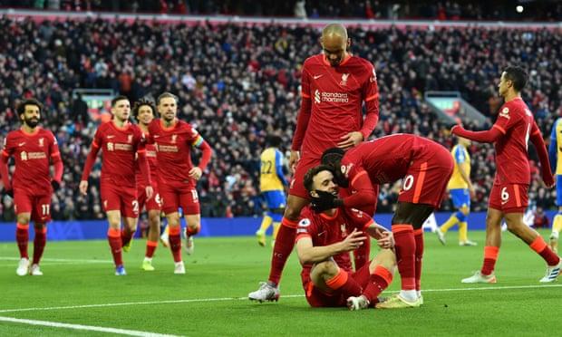 英超-若塔双响 蒂亚戈进球 利物浦4-0主场连胜
